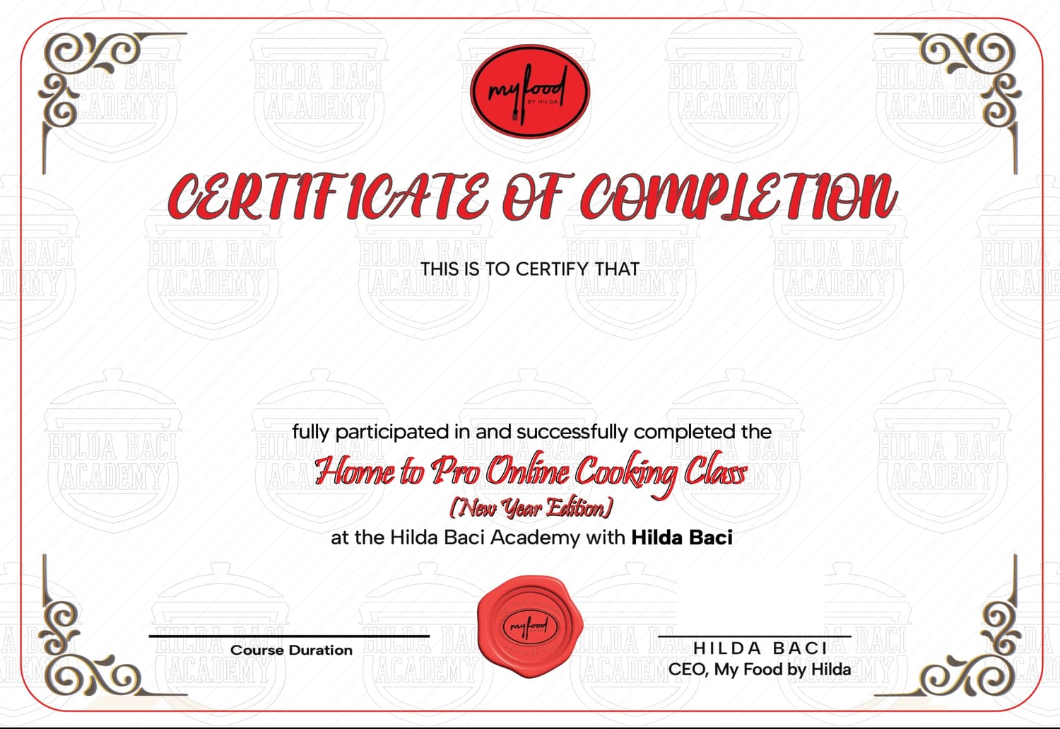 The classes are held online. Once you’ve registered, you’ll gain access to the HBA Student Portal where all class videos are uploaded. Additionally, you’ll be added to a Telegram group for real-time interaction with felloe students, facilitators, and Hilda Baci herself.